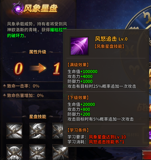 风象星盘可以提升人物的致命一击概率和致命一击伤害