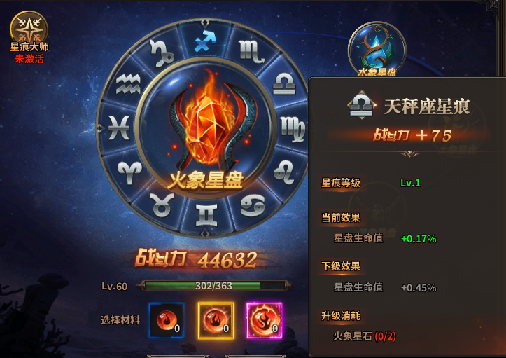除此之外星盘之中还有点亮星痕的玩法,玩家通过消耗对应的星石可以点亮星盘上的代表12星座的星痕,每个星盘上星痕有12种对应12星座,加成属性更加详细和全面,星痕被点亮后同样可以继续通过消耗星石来提升等级,等级达到指定标准还可以和装备星级大师一样激活星痕大师的额外属性加成。