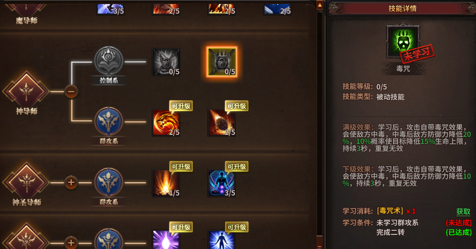 2转神导师群攻系可以学习2个技能: