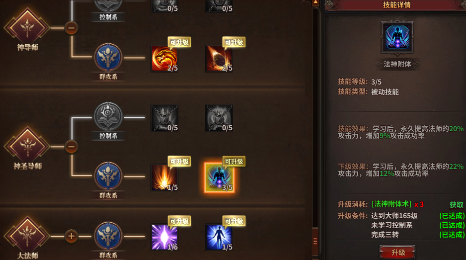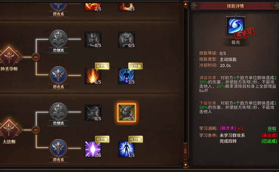 3转神圣导师群攻系可以学习2个技能: