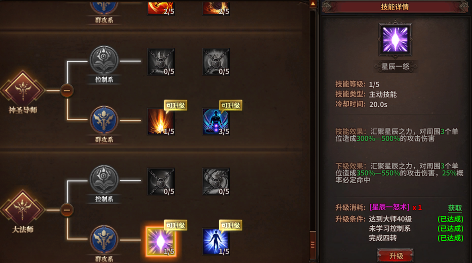 星辰一怒——顶级群攻技能,3个目标高额伤害,升级附加必中概率