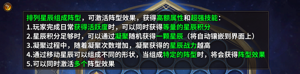2、通过移动星辰可以组成不同的形状,当组成特定的阵型时,将会获得阵型效果