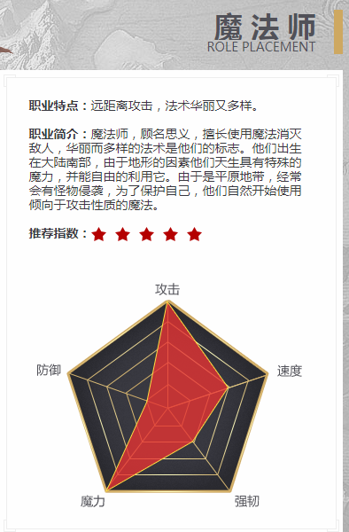 技能优势:范围输出,增伤、无视防御、范围高爆发技能。练级刷怪无可厚非稳坐第一,BOSS输出因为也有无视和增伤技能所以也不差但攻速方面略逊于攻弓,保命方面略差只有一个闪现技能。PVP方面,由于需要杀