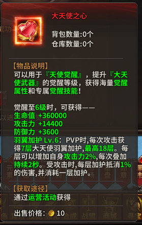 1、大天使武器可以通过消耗大天使之心提升觉醒等级