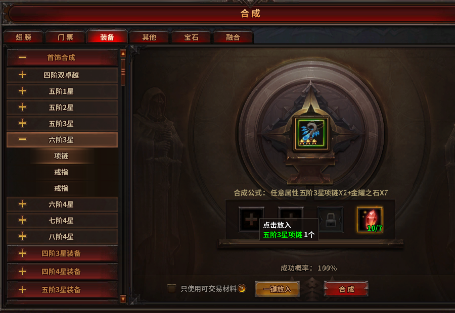 任意属性的五阶1星首饰可以合成五阶2星首饰