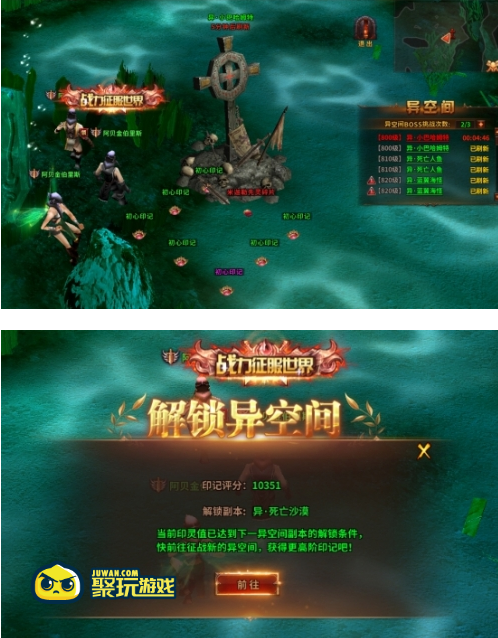 1) 异空间副本内存在多个异化BOSS,玩家击杀BOSS可获得【印记】,穿戴印记可提升印灵值。请注意,BOSS需要达成一定【印灵值】要求才能进行攻击哦;