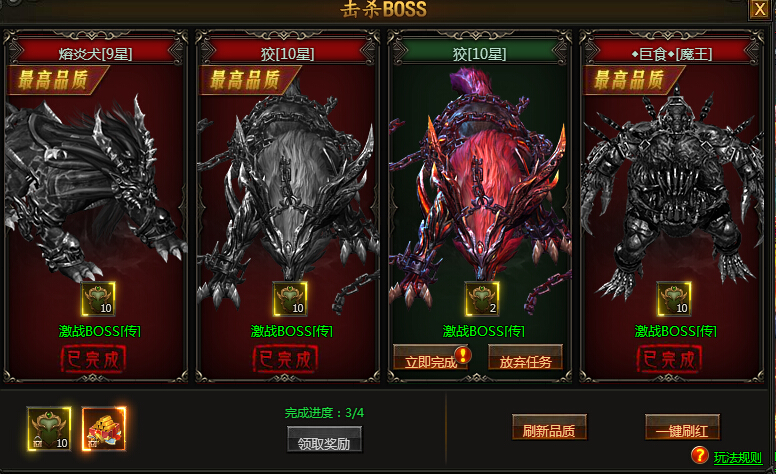 3.奖励有4种品质,且与boss类型无关,绿<紫<橙<红,每日必做