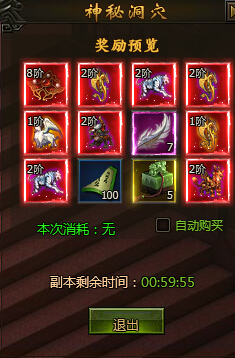 召唤神秘洞穴后,玩家可以在屏幕的右侧的任务栏旁点击进入神秘洞穴。进入洞穴后,玩家将会看到12个神秘宝箱,宝箱中的奖励可以在右侧查看到奖励说明。玩家可以选择自身想要开启的宝箱进行开启,第一次免费,之后开启需要消耗神秘徽章,每次消耗的数量都是前一次的2倍。