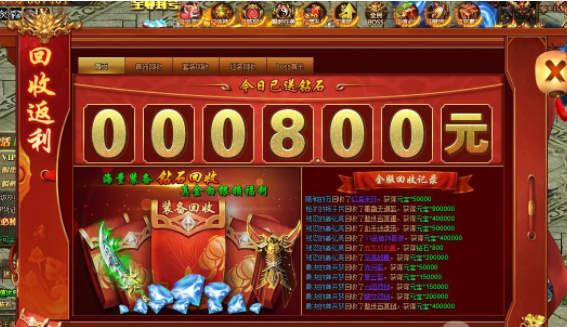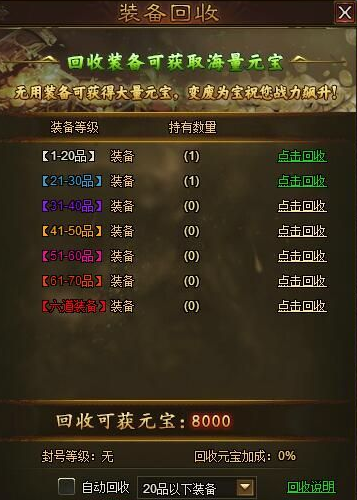 1、回收装备可获取大量元宝