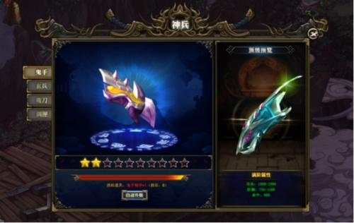 ○ 神兵可大幅度提高玩家战斗力