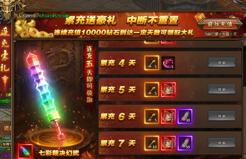 连续充值10000钻石达到一定天数可以领取我们为您准备的豪华大礼