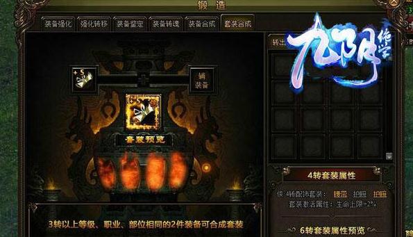 合成规则:两件三转以上的装备可以合成为一件套装。合成后的套装继承主装备的锻造等级和灵魂属性。