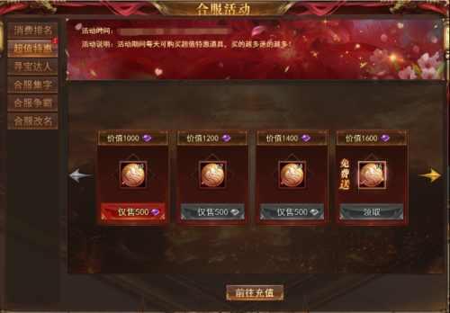 活动期间每天可购买超值特惠道具,购买达到一定条件还有额外赠送的道具,买的越多送的越多,道具每天更换!