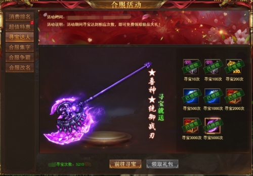 活动期间寻宝累计达到相应次数,即可领取极品大礼!