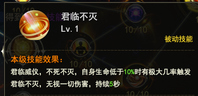 从技能效果来看,君临不灭是注重防守的,但是因为触发几率不算太高,显得有点鸡肋。从星术基础触发的话,沿途一线也是很多是注重PVP增益的,包括免爆伤害、减少玩家伤害等等,但是其中有一个技能估计玩家朋友们会忽略掉,就是魔御,增加对怪伤害属性,10级增加9900。这个属性简直是下本利器!从武力方向走的话,沿途也是一些对自身属性加成的技能,魔击和神击两个技能兼顾了对怪和对玩家伤害。总结一下,君临不灭这两条线,都是比较中庸但是非常实用的线路!