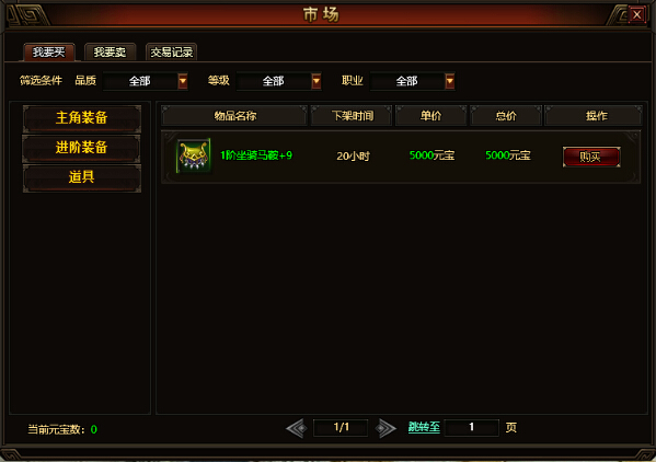 购买物品时,玩家可以在“我要买”栏目中进行操作。玩家可以通过左上角的“筛选条件”快速筛选市场中的宝贝,以便找到自己想要的货物。因为市场中所有物品的定价都是由物主自己决定的,所以当购买一件昂贵的道具或者装备时,玩家可以使用筛选条件筛选商品,并货比三家后再继续购买。这样可以避免买入的商品价格过高,使自己吃亏。