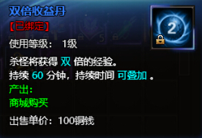 使用双倍收益丹可以在杀怪时获得双倍经验。玩家可以在挂机刷怪之前使用双倍收益丹,这样刷怪获得的经验就会大大增加。每颗双倍收益丹的效果可以持续1个小时,同时使用多颗收益丹可以延长效果发挥的时间。双倍收益丹可通过活动(如在线奖励)、商城等途径获得。