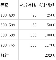 765级之前的升级基本就只能靠等级丹碎片进行合成了,等级丹合成消耗表如下: