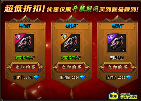 5折:折扣价2350钻石购买235个黑铁矿,限购5次