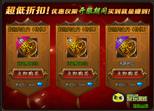 3.450级等级礼包,可以花费8888钻石购买4个超级转生丹