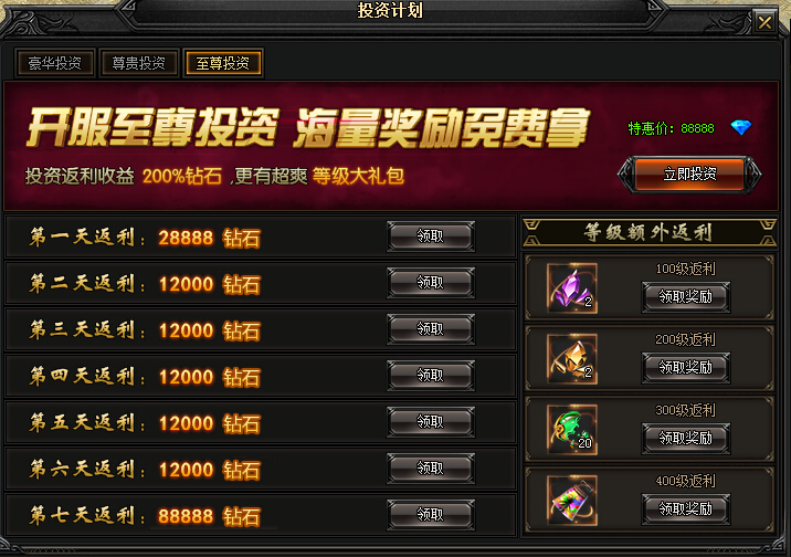 豪华投资(特惠价8888钻石):