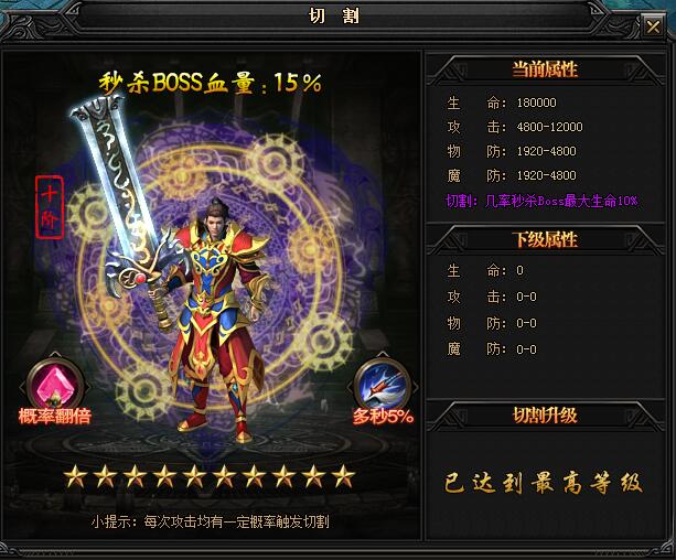 切割几率秒杀boss最大生命10%