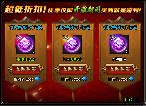 4折:100点兽魂积分折扣价2000钻石 限购3次
