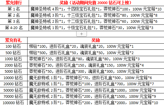 活动期间每日充值一定数量钻石即可领取超值大礼包,并且每日会按充值钻石数进行排名,排名奖励将在23:55通过邮件形式发放!