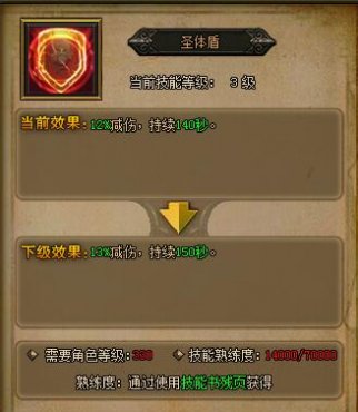 圣体盾作为游戏中唯一的伤害减免技能,其重要性不言而喻,初级圣体盾提供10%的减伤,持续120秒。
