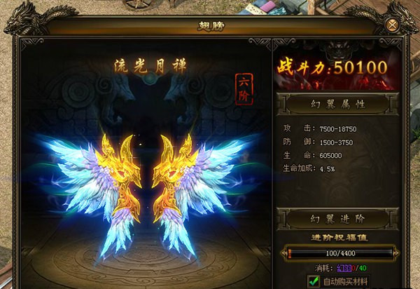 翅膀系统是一个非常强大的系统,升级的时候有着大量属性获得。而且外形会不停的变化,变的越来越酷炫。