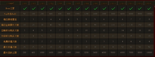 成为VIP用户即可获得海量特权,如相应等级大礼包、专属聊天标识、额外攻击BUFF、更多每日活动次数、一键完成日常任务、专属BOSS地图BOSS之家,升级打宝更容易!而随着玩家的VIP等级不断提升,获得的特权也会越多!