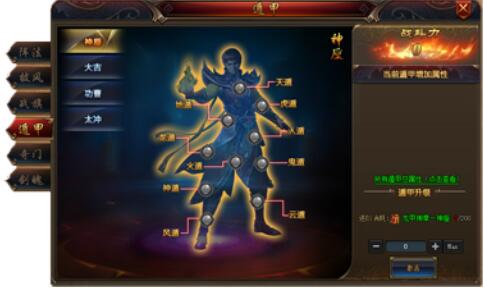 角色穿戴的普通装备各部位属性进行强化加成,赶快来激活属于你的 遁甲吧!