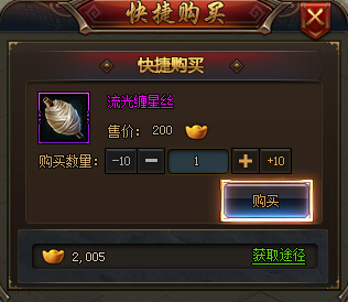 流光缠星丝获取途径主要有以下几个,首先最直接的就是在商城进行购买,商城中售价是200元宝每个,这个方法只针对土豪玩家,直接购买的话花费还是比较大的。其他玩家可以同过参加每日的大乱斗获得,可以获得流光缠星丝奖励。还有就是需要注意游戏活动了。
