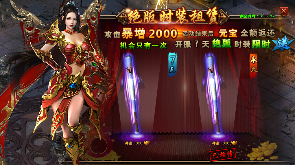 新服活动七天绝版时装租赁活动,玩家可以购买棒球棒(武器时装),活动结束后元宝押金全额返还