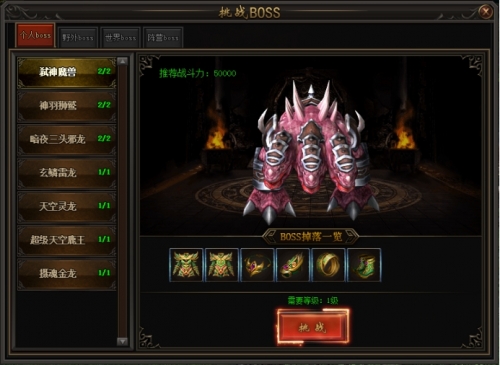 个人BOSS随着主线任务开启,开启之后可以通过主界面右上方的挑战BOSS按钮进入