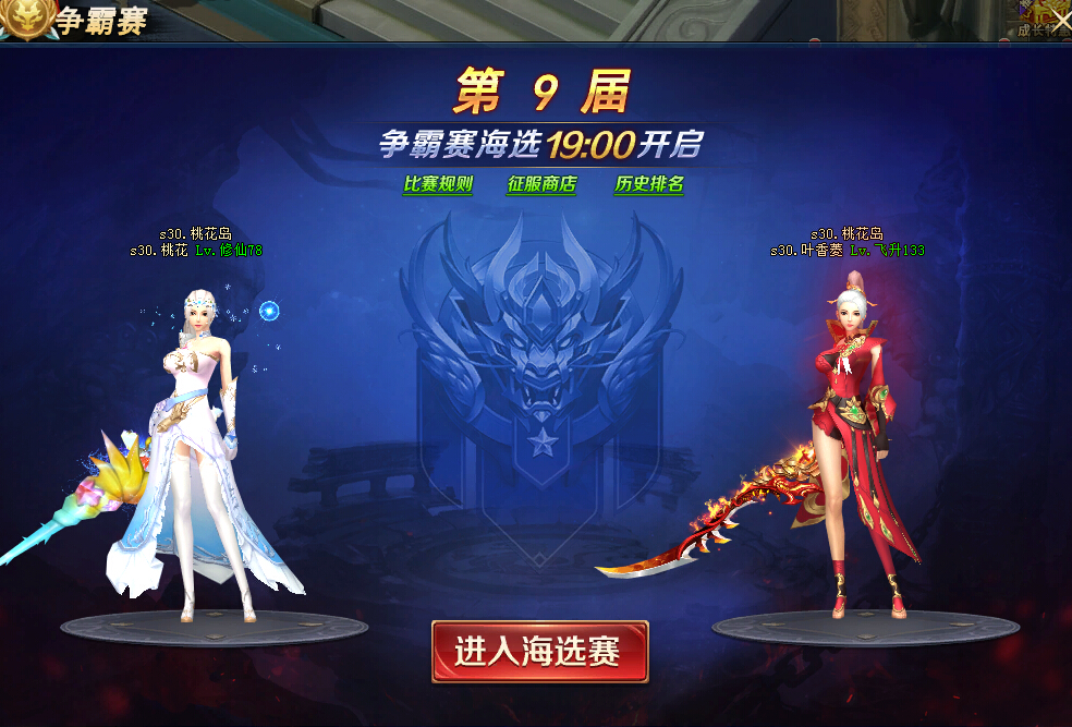 6.在周一海选19:25结束时通过邮件结算奖励,前32名进入争霸赛。
