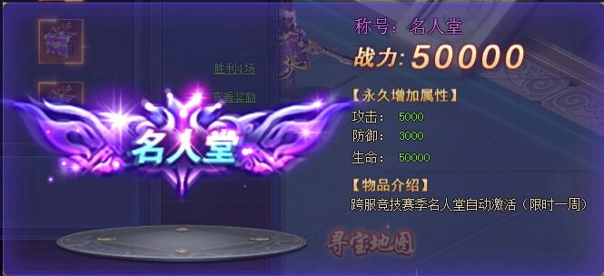 名人堂:跨服竞技以赛季模式进行,赛季结束时,战神榜上的最终名单将会进入名人堂,每个赛季持续1周,每周日凌晨,所有玩家段位重置。