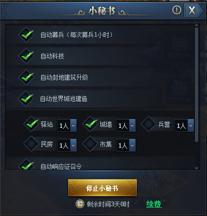 在网页游戏《三国群英传一统天下》中,当玩家官府等级达到8级开启【小秘书】功能,小秘书开启之后便会解放你的双手,让你攻城升级更加轻松。那么小秘书都能操作些什么呢?下面我们来了解一下。