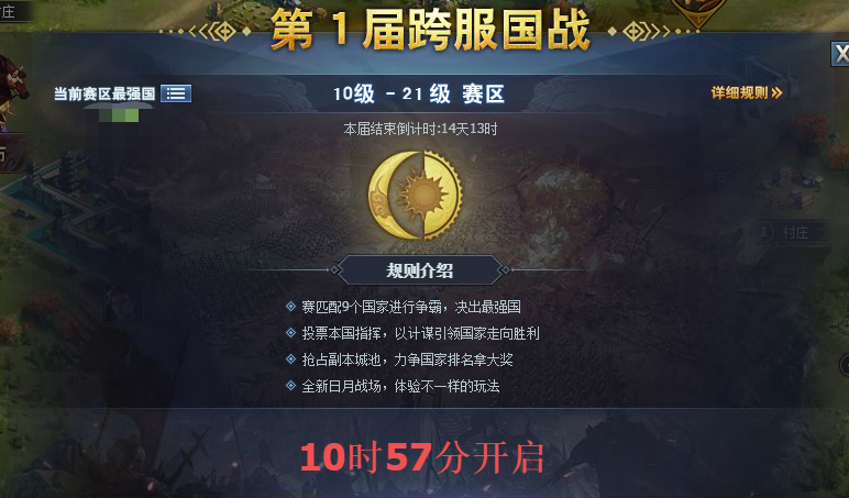 2、本国国家等级达到4级即可参与,活动将在21:10分正式开启,持续1小时,直到22:10分结束(若在20:00点之前没有达到4级,则不再参与本场比赛)。
