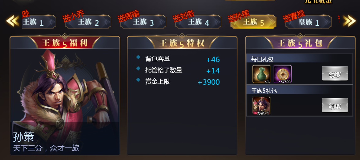 svip5礼包: 美酒*1 铜钱*37500 孙策*1