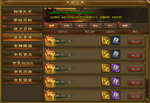 开服活动内,达到一定等级可领取限量奖励。