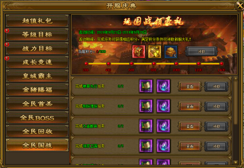 开服前7日可参与该活动,完成指定的每日任务可获得积分,达到对应积分可领取大量奖励!