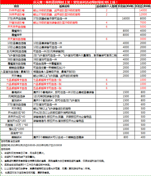 庆元宵!稀有道具限时上架!常驻返利活动限时最低5折上线!