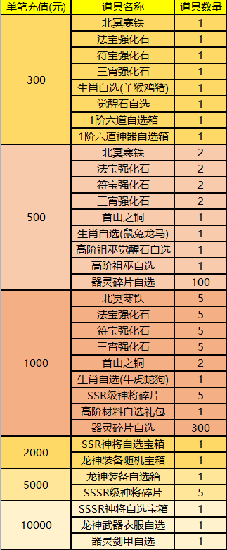 比如玩家充值 1000元,可以申请3个300或者1个1000 奖励!