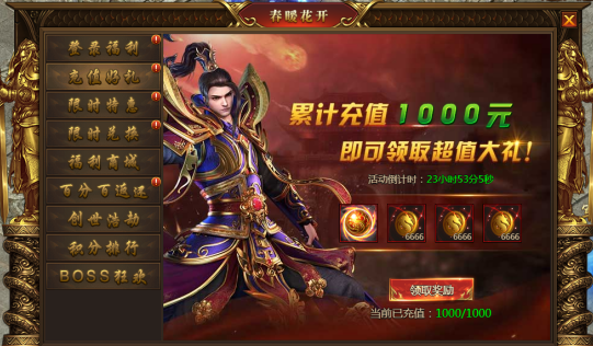 1.活动期间充值可在活动页面领取与充值金额等值的传奇币奖励