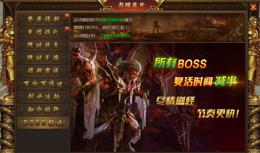 1.活动期间所有boss复活时间减半(跨服boss除外)