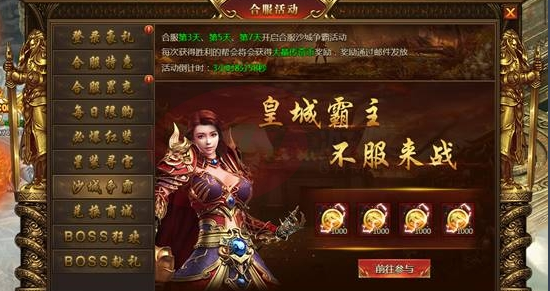 合服3、5、7天开启合服沙城争霸活动,胜利的帮会将会获得大量传奇币奖励