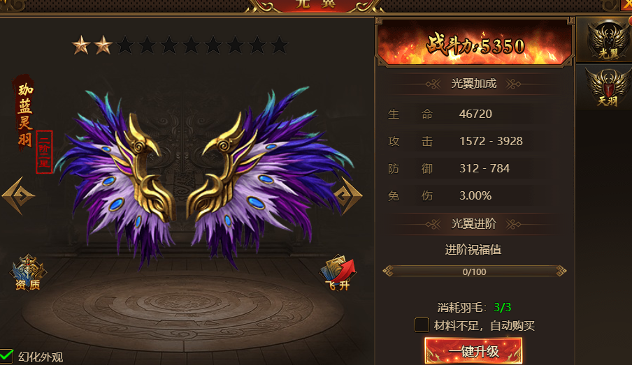 第三天如果是土豪,战力基本50万没问题,第三天出天灵。如果是在线时间长的玩家,先升切割,如果在线少,先升天灵。切割是打怪的,天灵加增伤的,两个不一样。幻兽基本第一天就满了。