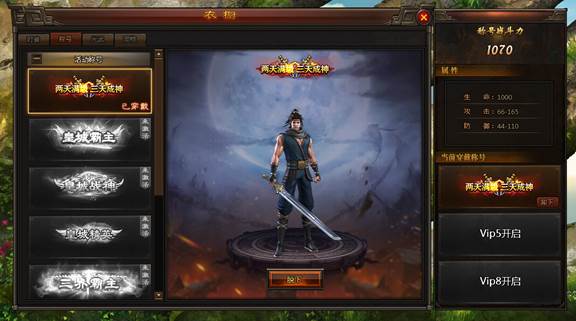 人靠衣装马靠鞍,一副帅气的装扮让您的魅力提升百倍,迷倒万千少女。还有大量属性加成,拥有魅力的同时还提升了实力。更有特殊时装!有些特殊的时装可以通过参加活动获得,也可以通过VIP获得。
