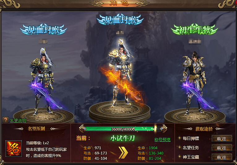 名望压制:攻击名望低于自己的玩家造成伤害提升9%
